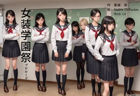 あらすじ とある男子校にて学園祭での女装企画が行われた。 それは全校生徒一人残らず全員コスプレを強要するというものだった。 下着、ウィッグ、メイク、体形補正(おっぱい肉襦袢)まで含めた本格的な女装。 一年生と二年生の女装は学生制服、職業制服であった。 フルカラー150ページ 作 真城 悠 絵 Stable Diffusion W…